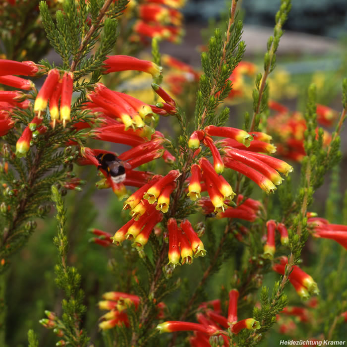 (Erica sp.). beheimatet. Man nennt sie auch "Kapheide", weil diese Arten aus der ehemaligen Kapprovinz von Südafrika stammen. Diese sind nicht an Frost angepasst und können